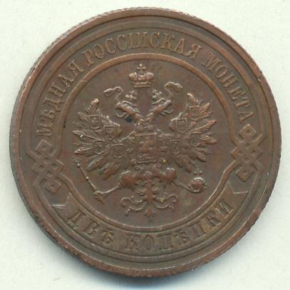 Лицевая сторона — двуглавый орел, надпись МЕДНАЯ РОССIЙСКАЯ МОНЕТА и обозначение номинала (две копейки); оборотная — обозначение номинала (2 копейки) в бусовом ободке и дата. Нормативный вес — 6,55 грамма, гурт рубчатый.