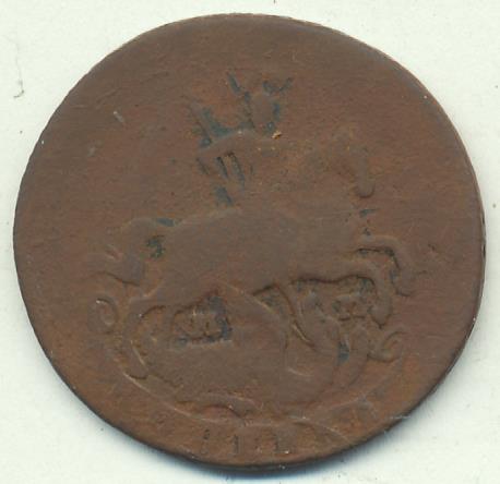 Лицевая сторона — Георгий Победоносец и обозначение номинала (копейка) в картуше, оборотная — вензель Екатерины II и дата. Нормативный вес — 10,24 грамма, гурт — сетка, или узор, или шнур.