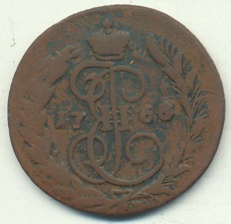 Указом от 27 января 1763 года Екатерина II прекращает перечеканку тяжелых монет 16-рублевой стопы в легкие (32-рублевой стопы) и начинает обратный процесс. Медные монеты приобретают тот же вид, что они имели при Елизавете, меняется лишь вензель императрицы.