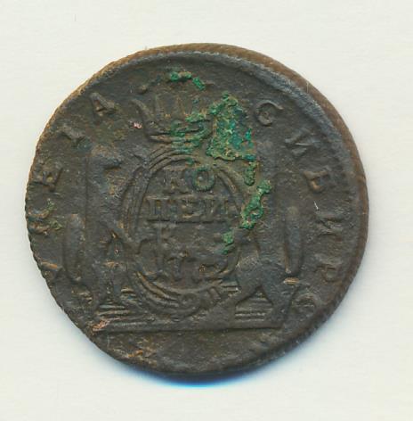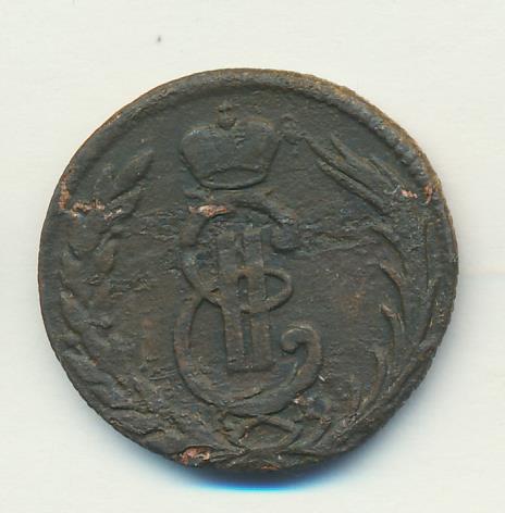Лицевая сторона - два соболя поддерживают щит с обозначением номинала (копейка) под короной, надпись «СИБИРСКАЯ МОНЕТА». Оборотная — вензель Екатерины II в венке из пальмовой и лавровой ветвей. Гурт — шнур, вес — 6,55 грамма.