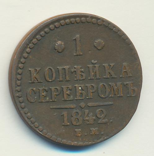 Лицевая сторона — вензель Николая I в бусовом ободке, оборотная — надпись «1 КОПЕЙКА СЕРЕБРОМ» и дата. Нормативный вес — 10,24 грамма, гурт гладкий.