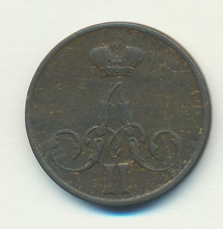 Лицевая сторона — вензель Николая I, оборотная — обозначение номинала (копейка) и дата. Нормативный вес — 5,12 грамма, гурт гладкий.