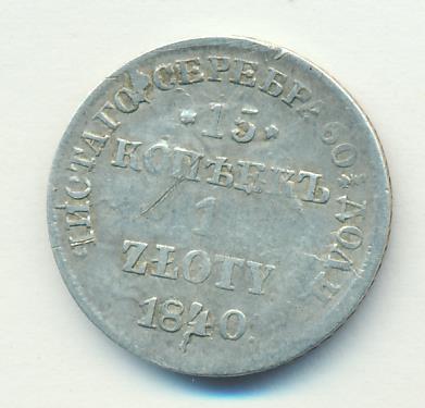 Указом от 15 октября 1832 года «для удобства торговых сношений» Николай I добавляет в ряд серебряных монет новый номинал — 15 копеек, соответствующий одному польскому злотому. Указом от 1 мая 1834 года разрешается чеканка всех номиналов Варшавскому двору. Для организации штемпельного производства из Петербурга 19 июня того же года высылаются рисунки, четыре пары штемпелей и четыре образцовых монеты.