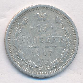 Лицевая сторона — гербовый орел, оборотная —обозначение номинала (15 копеекъ), окруженное венком из лавровой и дубовой ветвей и дата.