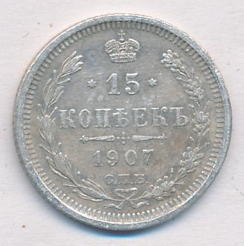 Лицевая сторона — гербовый орел, оборотная —обозначение номинала (15 копеекъ), окруженное венком из лавровой и дубовой ветвей и дата.
