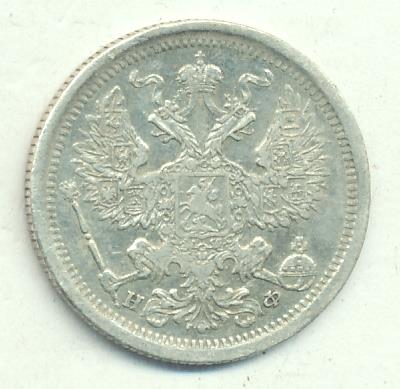 Лицевая сторона — гербовый орел, оборотная —обозначение номинала (20 копеекъ), окруженное венком из лавровой и дубовой ветвей и дата.