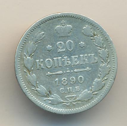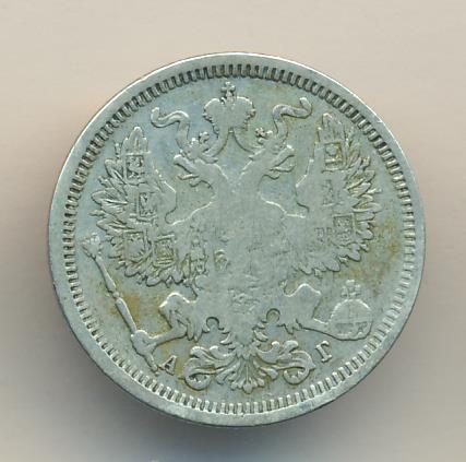 Лицевая сторона — гербовый орел, оборотная —обозначение номинала (20 копеекъ), окруженное венком из лавровой и дубовой ветвей и дата.