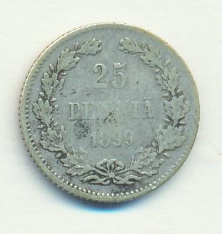 Лицевая сторона — российский двуглавый орел с гербом Великого княжества Финляндского на груди, оборотная — номинал и дата в венке из дубовых листьев. Проба — 750, нормативный вес — 1,27 грамма, гурт рубчатый.