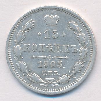 Лицевая сторона — гербовый орел, оборотная —обозначение номинала (15 копеекъ), окруженное венком из лавровой и дубовой ветвей и дата.