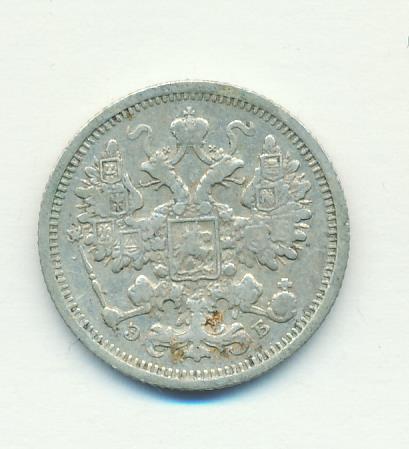 Лицевая сторона — гербовый орел, оборотная —обозначение номинала (15 копеекъ), окруженное венком из лавровой и дубовой ветвей и дата.