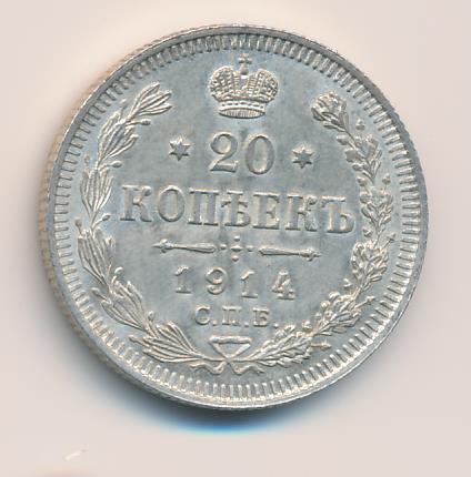 Лицевая сторона — гербовый орел, оборотная —обозначение номинала (20 копеекъ), окруженное венком из лавровой и дубовой ветвей и дата.