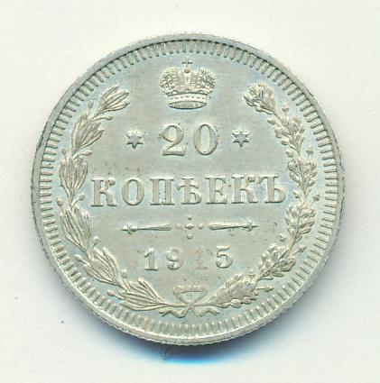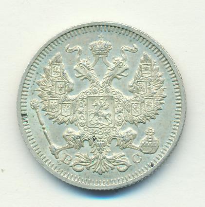 Лицевая сторона — гербовый орел, оборотная —обозначение номинала (20 копеекъ), окруженное венком из лавровой и дубовой ветвей и дата.