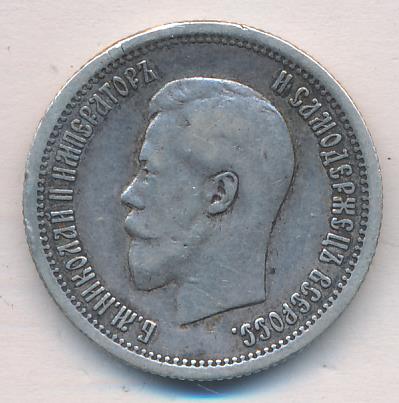 Лицевая сторона — портрет Николая II в круговой надписи «Б.М. НИКОЛАЙ II ИМПЕРАТОРЪ И САМОДЕРЖЕЦЪ ВСЕРОСС», оборотная — двуглавый орел, обозначение номинала (25 копеекъ) и дата.