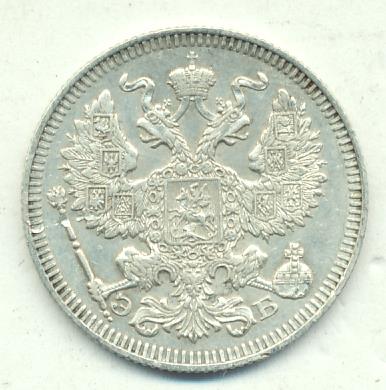 Лицевая сторона — гербовый орел, оборотная —обозначение номинала (20 копеекъ), окруженное венком из лавровой и дубовой ветвей и дата.