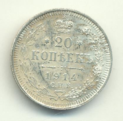 Лицевая сторона — гербовый орел, оборотная —обозначение номинала (20 копеекъ), окруженное венком из лавровой и дубовой ветвей и дата.