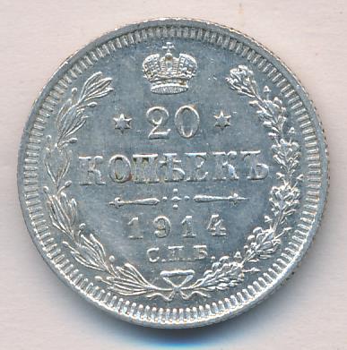 Лицевая сторона — гербовый орел, оборотная —обозначение номинала (20 копеекъ), окруженное венком из лавровой и дубовой ветвей и дата.