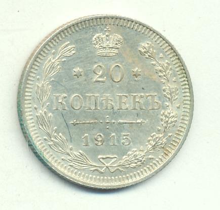 Лицевая сторона — гербовый орел, оборотная —обозначение номинала (20 копеекъ), окруженное венком из лавровой и дубовой ветвей и дата.