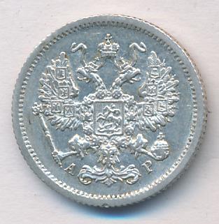 Лицевая сторона — гербовый орел, оборотная —обозначение номинала (10 копеекъ), окруженное венком из лавровой и дубовой ветвей и дата.