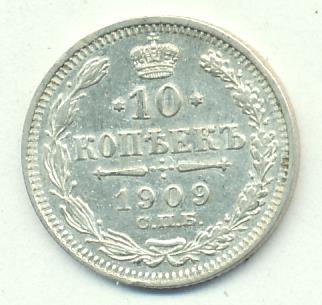 Лицевая сторона — гербовый орел, оборотная —обозначение номинала (10 копеекъ), окруженное венком из лавровой и дубовой ветвей и дата.