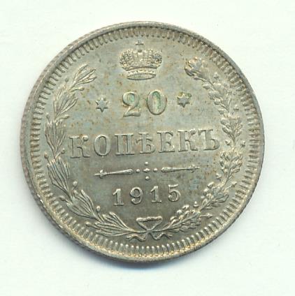 Лицевая сторона — гербовый орел, оборотная —обозначение номинала (20 копеекъ), окруженное венком из лавровой и дубовой ветвей и дата.