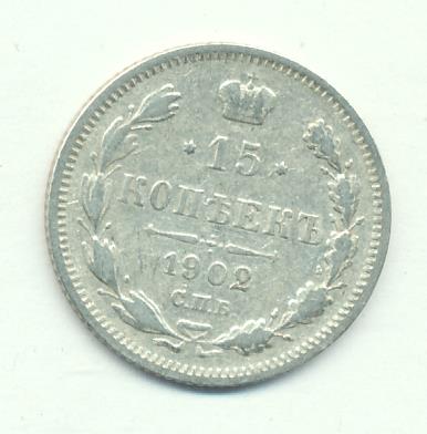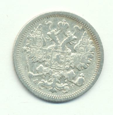 Лицевая сторона — гербовый орел, оборотная —обозначение номинала (15 копеекъ), окруженное венком из лавровой и дубовой ветвей и дата.