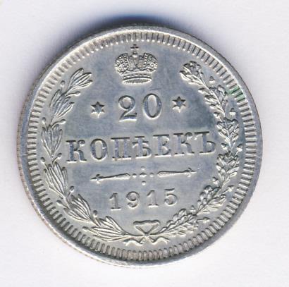 Лицевая сторона — гербовый орел, оборотная —обозначение номинала (20 копеекъ), окруженное венком из лавровой и дубовой ветвей и дата.