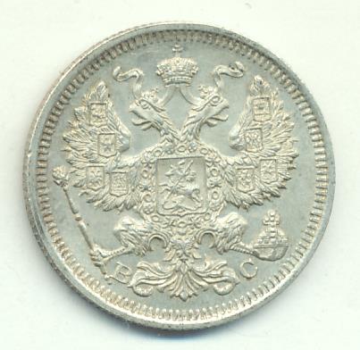 Лицевая сторона — гербовый орел, оборотная —обозначение номинала (20 копеекъ), окруженное венком из лавровой и дубовой ветвей и дата.