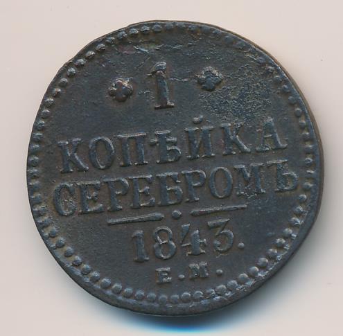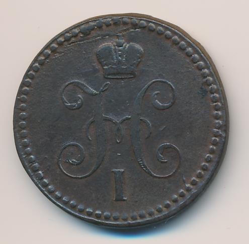 Лицевая сторона — вензель Николая I в бусовом ободке, оборотная — надпись «1 КОПЕЙКА СЕРЕБРОМ» и дата. Нормативный вес — 10,24 грамма, гурт гладкий.
