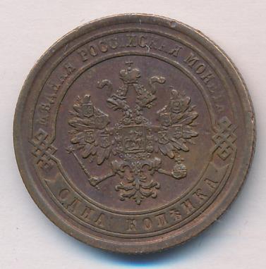 Лицевая сторона — двуглавый орел, надпись МЕДНАЯ РОССIЙСКАЯ МОНЕТА и обозначение номинала (одна копейка); оборотная — обозначение номинала (1 копейка) в бусовом ободке и дата. Нормативный вес — 3,28 грамма, гурт рубчатый.