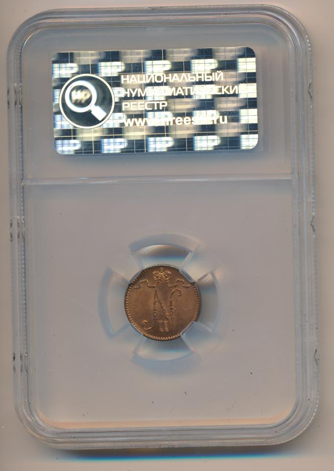 Лицевая сторона — вензель Александра II, оборотная — номинал (1 PENNIA) и дата. Нормативный вес — 1,28 грамма, гурт гладкий.
