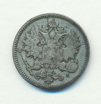 Лицевая сторона — российский двуглавый орел с гербом Великого княжества Финляндского на груди, оборотная — номинал и дата в венке из дубовых листьев. Проба — 750, нормативный вес — 1,27 грамма, гурт рубчатый.