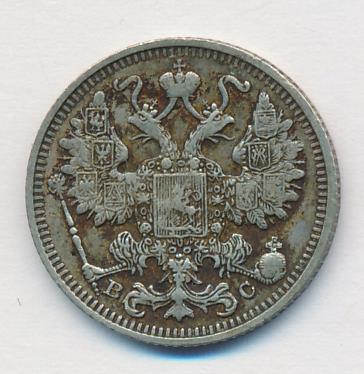 Лицевая сторона — гербовый орел, оборотная —обозначение номинала (15 копеекъ), окруженное венком из лавровой и дубовой ветвей и дата.