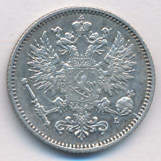 Лицевая сторона — российский двуглавый орел с гербом Великого княжества Финляндского на груди, оборотная — номинал и дата в венке из дубовых листьев. Проба — 750, нормативный вес — 2,55 грамма, гурт рубчатый.