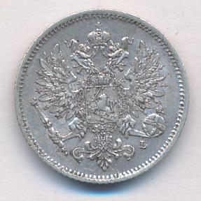 Лицевая сторона — российский двуглавый орел с гербом Великого княжества Финляндского на груди, оборотная — номинал и дата в венке из дубовых листьев. Проба — 750, нормативный вес — 1,27 грамма, гурт рубчатый.