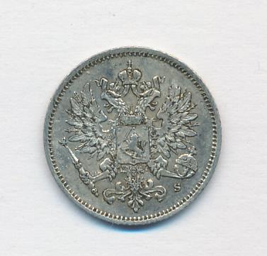 Лицевая сторона — российский двуглавый орел с гербом Великого княжества Финляндского на груди, оборотная — номинал и дата в венке из дубовых листьев. Проба — 750, нормативный вес — 1,27 грамма, гурт рубчатый.