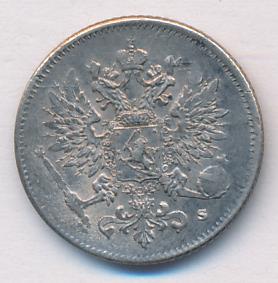 Лицевая сторона — российский двуглавый орел с гербом Великого княжества Финляндского на груди, оборотная — номинал и дата в венке из дубовых листьев. Проба — 750, нормативный вес — 1,27 грамма, гурт рубчатый.