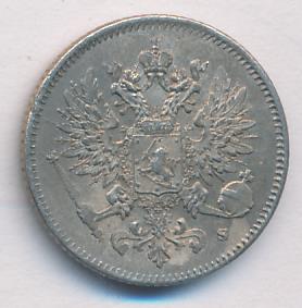 Лицевая сторона — российский двуглавый орел с гербом Великого княжества Финляндского на груди, оборотная — номинал и дата в венке из дубовых листьев. Проба — 750, нормативный вес — 1,27 грамма, гурт рубчатый.