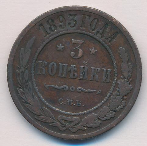 Лицевая сторона — двуглавый орел, надпись МЕДНАЯ РОССIЙСКАЯ МОНЕТА и обозначение номинала (три копейки); оборотная — обозначение номинала (3 копейки) в бусовом ободке и дата. Нормативный вес — 9,83 грамма, гурт рубчатый.