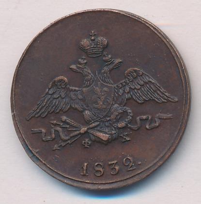 На новой серии медных монет оформление герба как на золотых (с 1817 года) и серебряных (с 1826 года), хотя еще в 1830 году было указано сделать для них орла как на платиновых. Таким образом, вышедшие в 1832 году в обращение новые медные монеты изначально имеют устаревшее оформление, а золотые и серебряные с этого же 1832 года — новое.