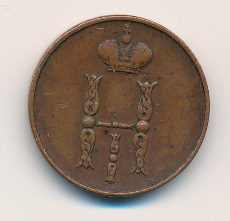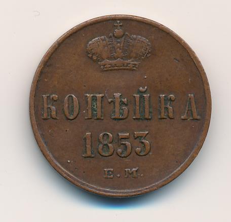Лицевая сторона — вензель Николая I, оборотная — обозначение номинала (копейка) и дата. Нормативный вес — 5,12 грамма, гурт гладкий.