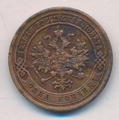 Лицевая сторона — двуглавый орел, надпись МЕДНАЯ РОССIЙСКАЯ МОНЕТА и обозначение номинала (одна копейка); оборотная — обозначение номинала (1 копейка) в бусовом ободке и дата. Нормативный вес — 3,28 грамма, гурт рубчатый.