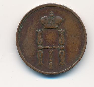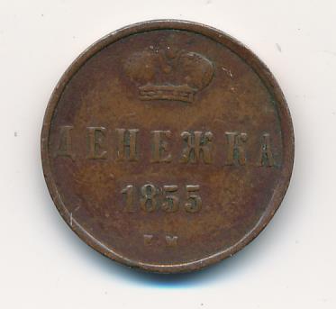Лицевая сторона — вензель Николая I, оборотная — обозначение номинала (денежка) и дата. Нормативный вес — 2,56 грамма, гурт гладкий.