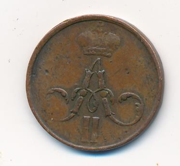 Лицевая сторона — вензель Николая I, оборотная — обозначение номинала (денежка) и дата. Нормативный вес — 2,56 грамма, гурт гладкий.