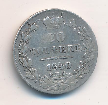 Лицевая сторона — новый гербовый орел с поднятыми крыльями, оборотная —обозначение номинала (20 копеекъ), окруженное венком из лавровой и дубовой ветвей и дата. Проба — 868, нормативный вес — 4,15 грамма.