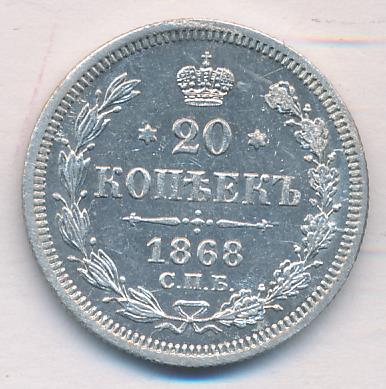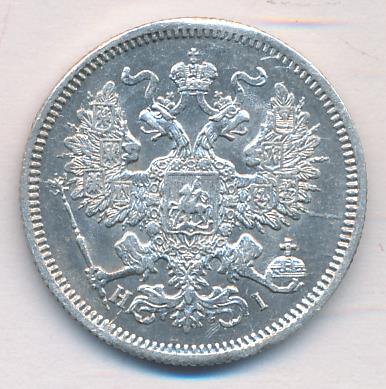 Лицевая сторона — гербовый орел, оборотная —обозначение номинала (20 копеекъ), окруженное венком из лавровой и дубовой ветвей и дата.