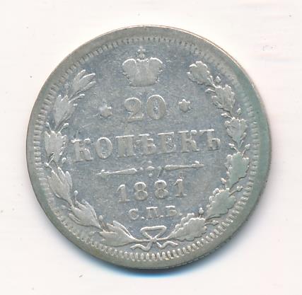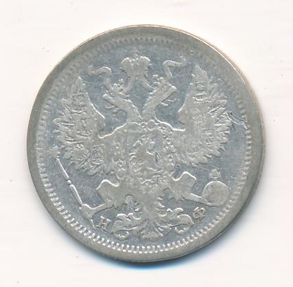 Лицевая сторона — гербовый орел, оборотная —обозначение номинала (20 копеекъ), окруженное венком из лавровой и дубовой ветвей и дата.