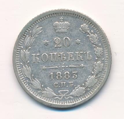 Лицевая сторона — гербовый орел, оборотная —обозначение номинала (20 копеекъ), окруженное венком из лавровой и дубовой ветвей и дата.