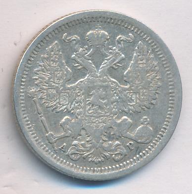 Лицевая сторона — гербовый орел, оборотная —обозначение номинала (20 копеекъ), окруженное венком из лавровой и дубовой ветвей и дата.