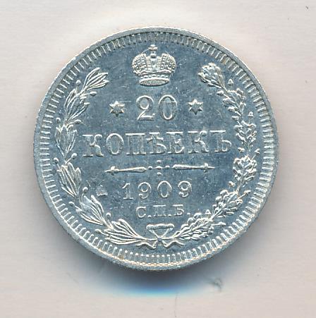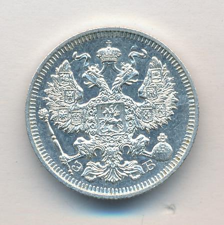 Лицевая сторона — гербовый орел, оборотная —обозначение номинала (20 копеекъ), окруженное венком из лавровой и дубовой ветвей и дата.
