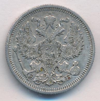 Лицевая сторона — гербовый орел, оборотная —обозначение номинала (20 копеекъ), окруженное венком из лавровой и дубовой ветвей и дата.